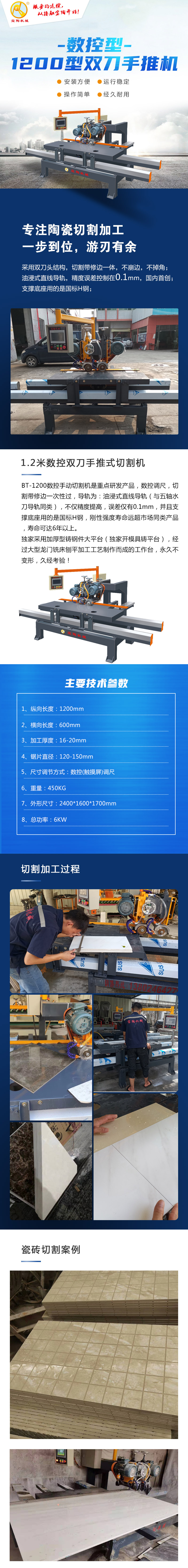 1.2米數(shù)控雙刀手推式切割機(jī),切割帶修邊一次性過,導(dǎo)軌為:油浸式直線導(dǎo)軌(與五軸水刀導(dǎo)軌同類),不僅精度提高,誤差僅有0.1mm,并且支撐底座用的是國標(biāo)H鋼,剛性強(qiáng)度壽命遠(yuǎn)超市場同類產(chǎn)品,壽命可達(dá)6年以上。